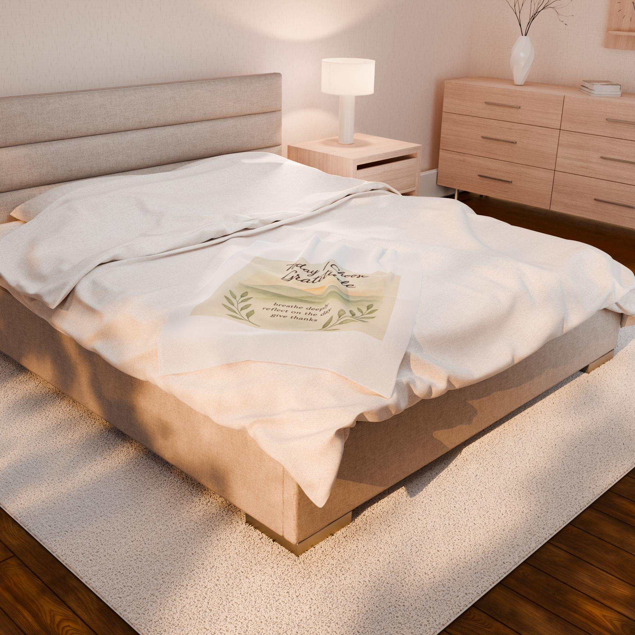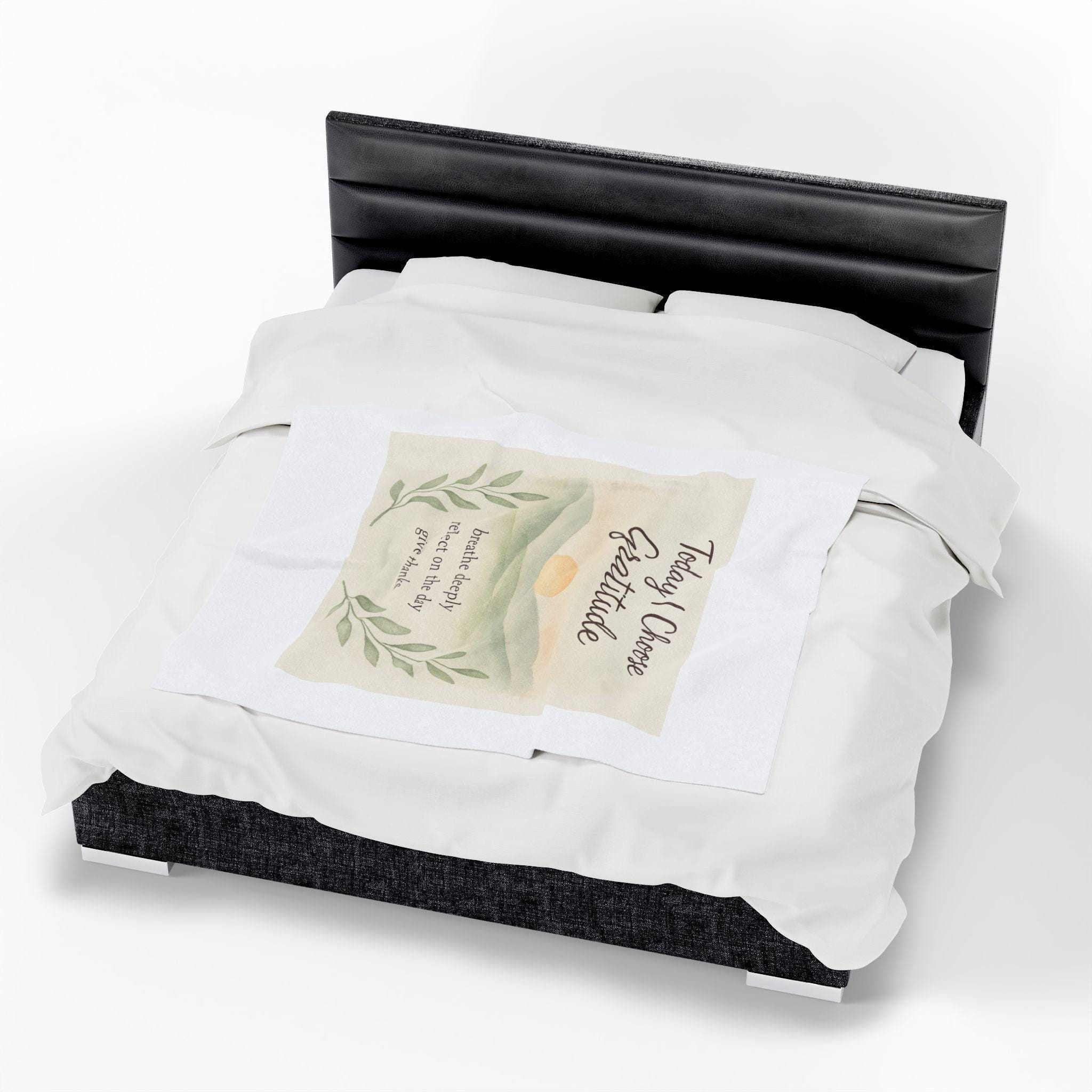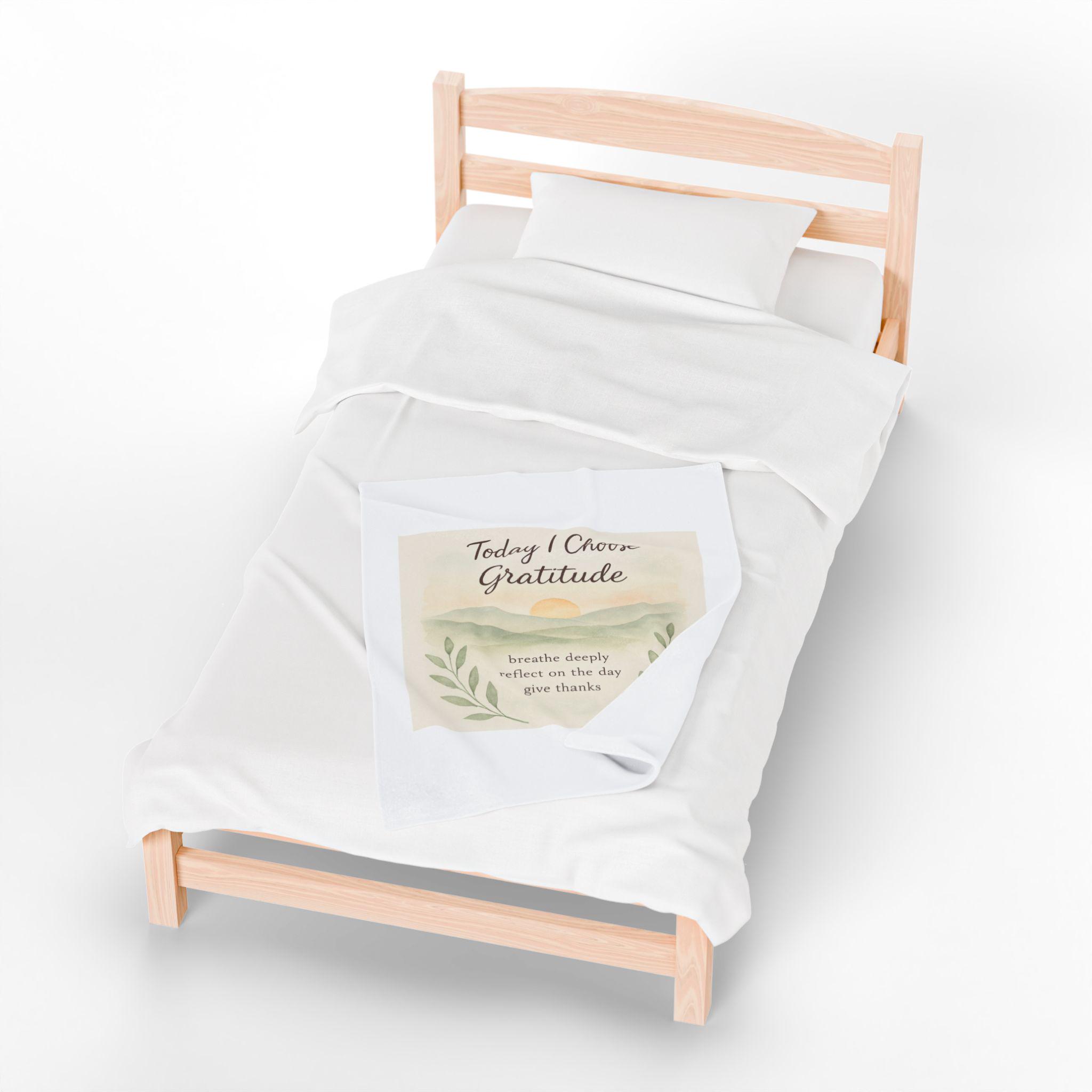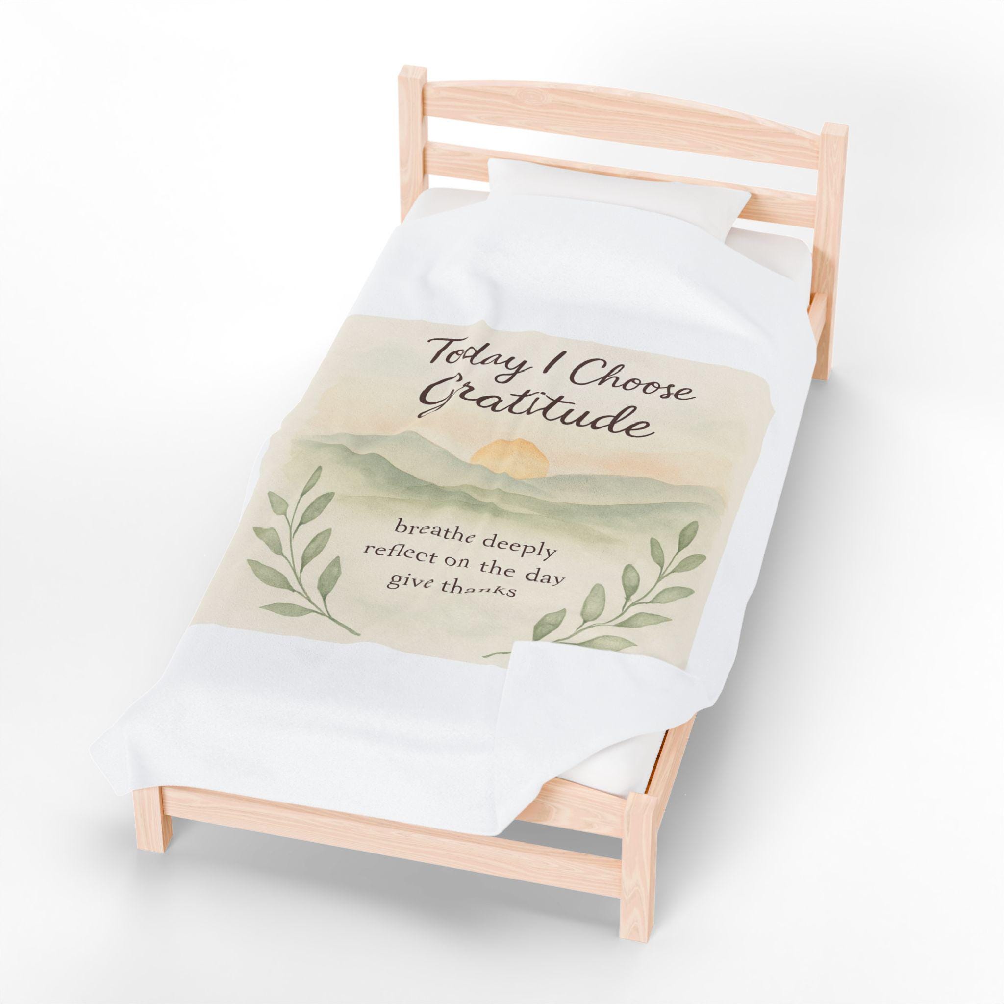 Wrap yourself in a soft, mindful moment. This velveteen plush blanket features a gentle sunrise illustration and the words “Today I Choose Gratitude,” inviting a quiet pause each morning or evening. The plush surface feels warm and soothing against the skin while the printed panel keeps the calming design front-and-center. Drape it over a favorite chair for reflective breathing sessions, tuck it around your shoulders during journaling, or spread it across your lap during slow, restorative evenings. Subtle botanical accents and muted earth tones create a peaceful atmosphere—comfort that encourages presence and gratitude rather than shouting for attention.