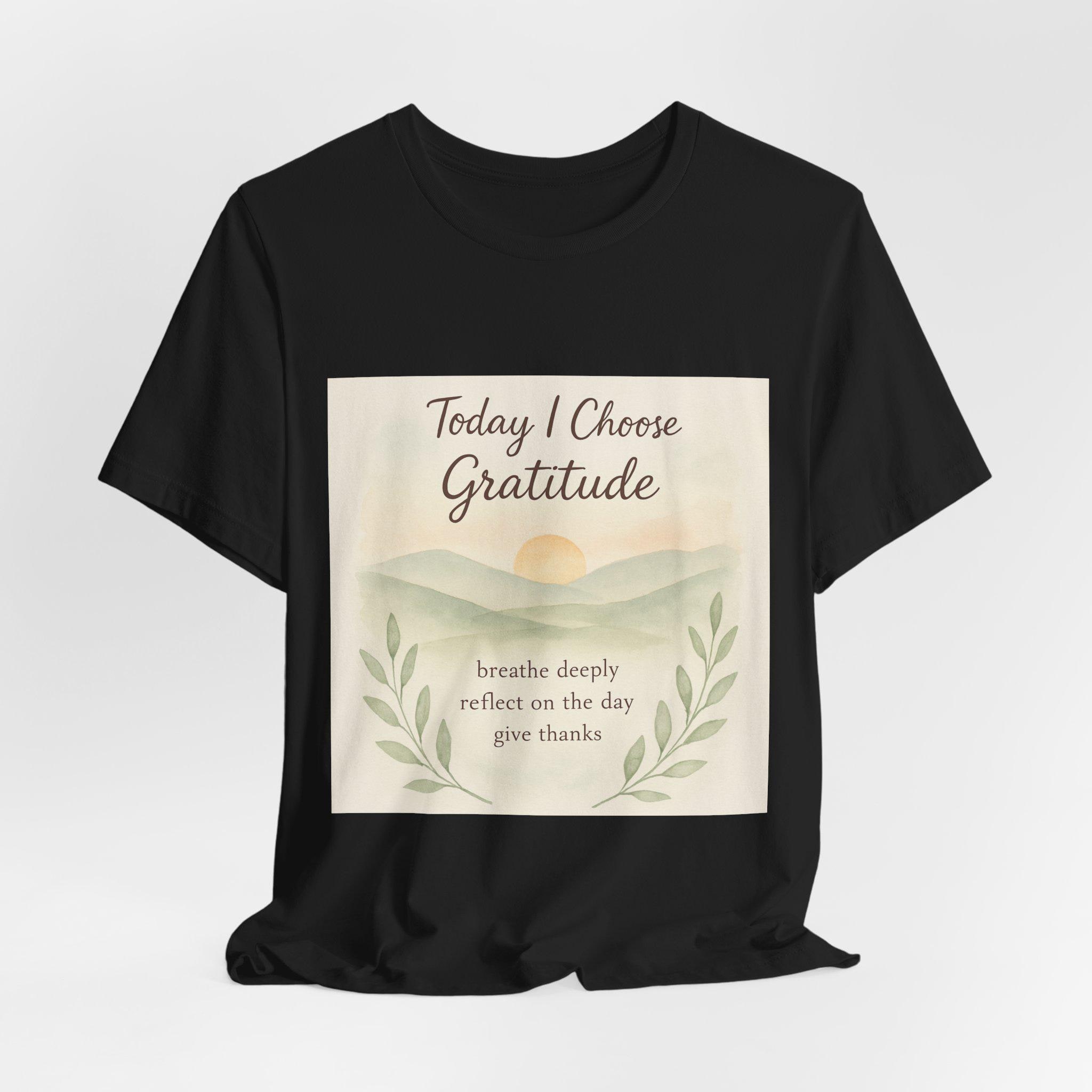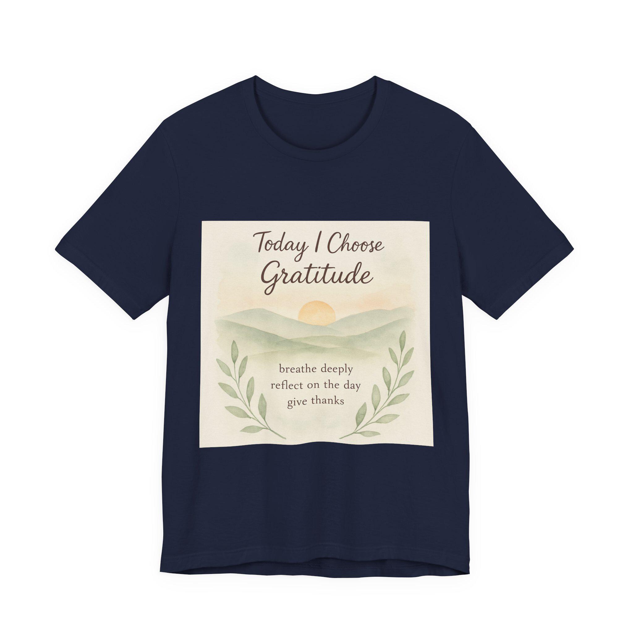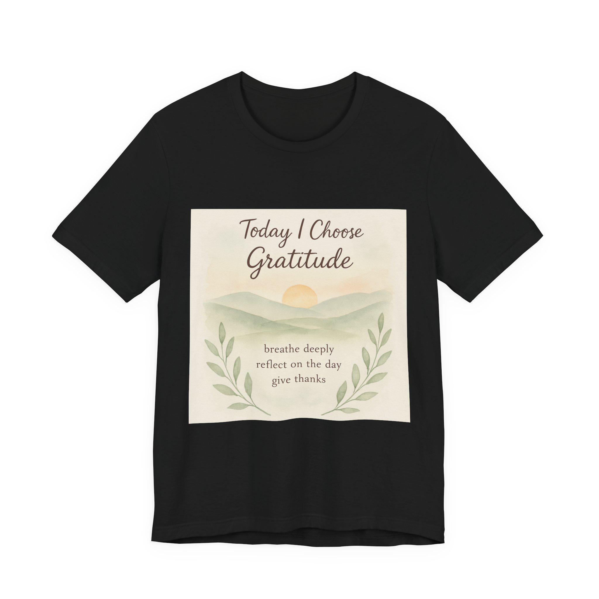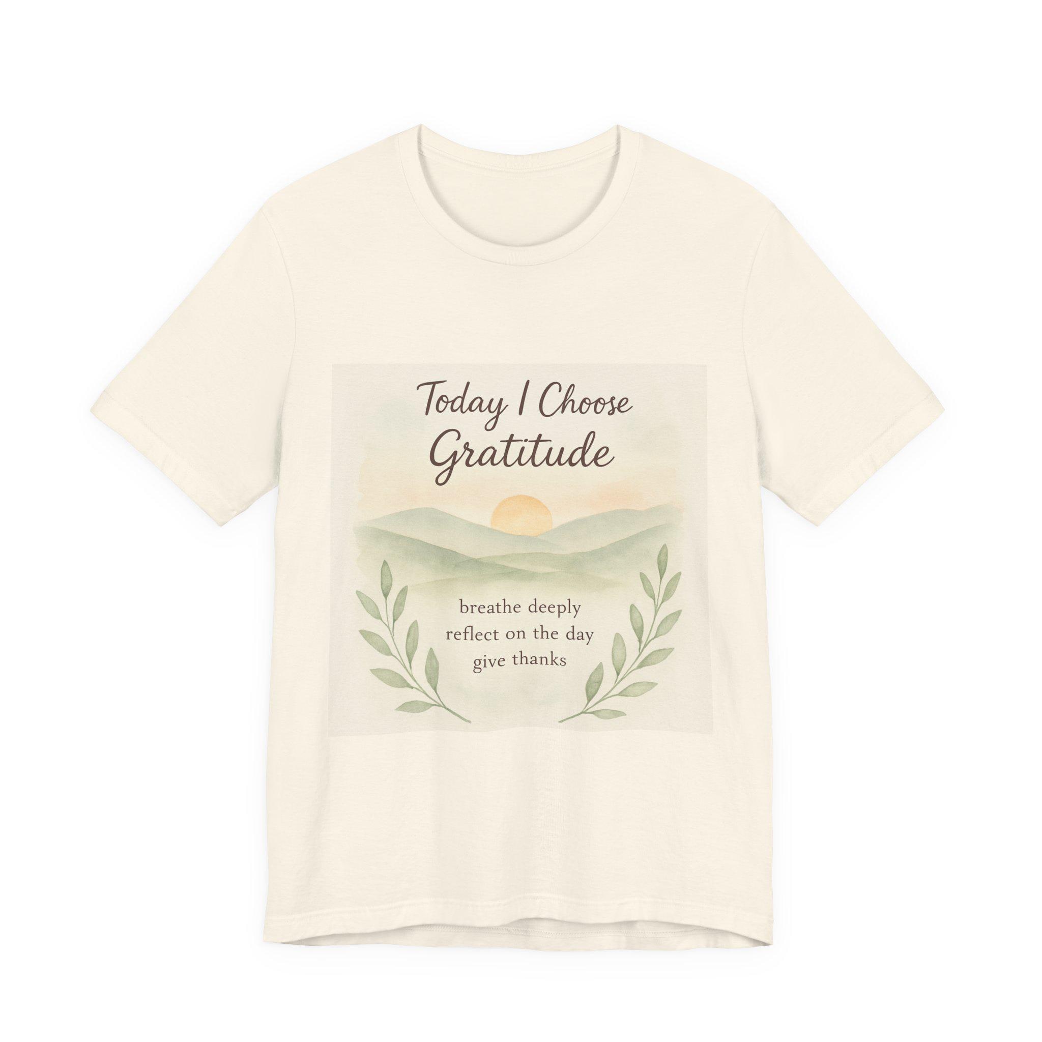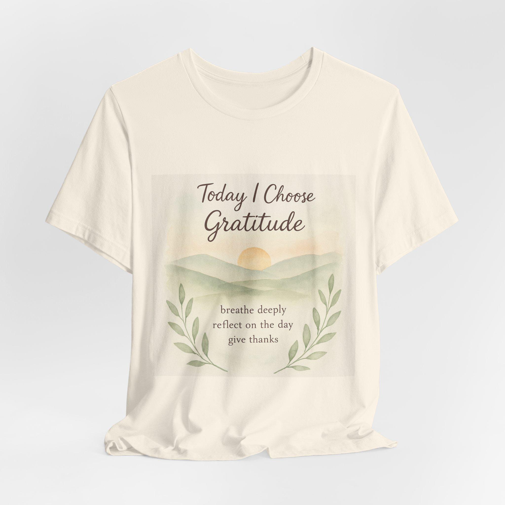 Soft, breathable tee designed to carry a quiet, grounding message. A gentle sunrise illustration and calming script read “Today I Choose Gratitude,” surrounded by delicate laurel leaves — a wearable reminder to breathe, reflect, and give thanks. Lightweight Airlume cotton keeps you comfortable through morning routines, slow walks, or cozy moments at home. The retail crew neckline and clean silhouette layer easily under jackets or pair simply with jeans for a relaxed, intentional look.