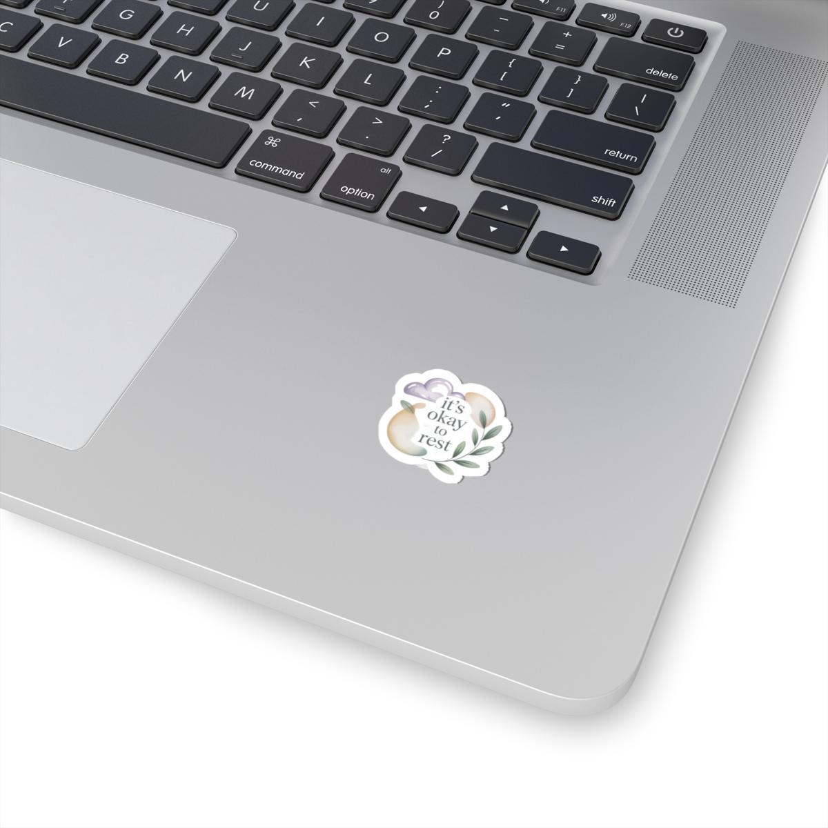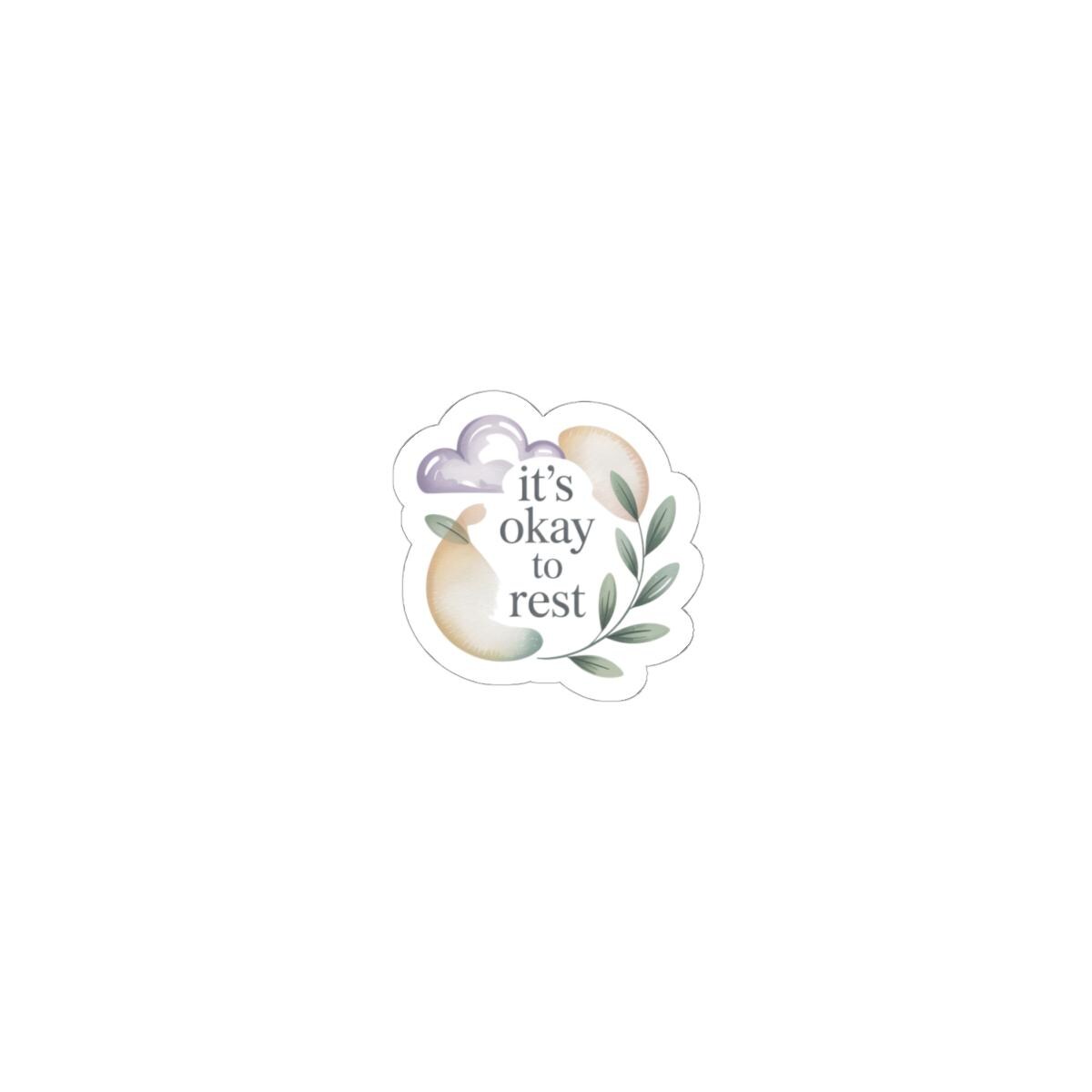 Soft pastel sticker that pairs a gentle serif phrase with simple botanical and cloud icons to reflect the low-energy affirmations trend. The artwork reads a validating, low-pressure message and uses a cream-and-lavender palette with delicate leaves to convey calm, steady reassurance. Designed to sit unobtrusively on laptops, journals, or water bottles for everyday moments of self-compassion.
