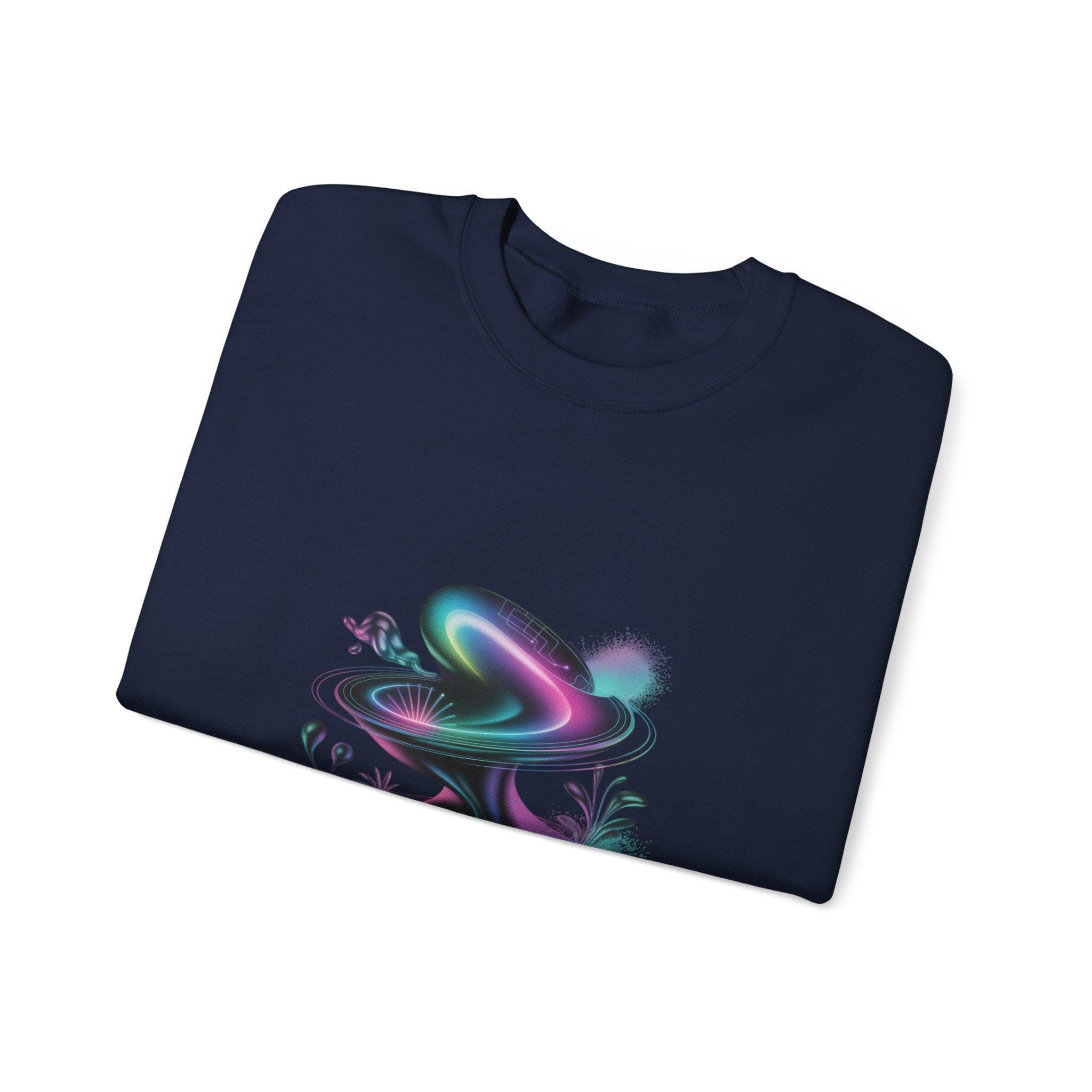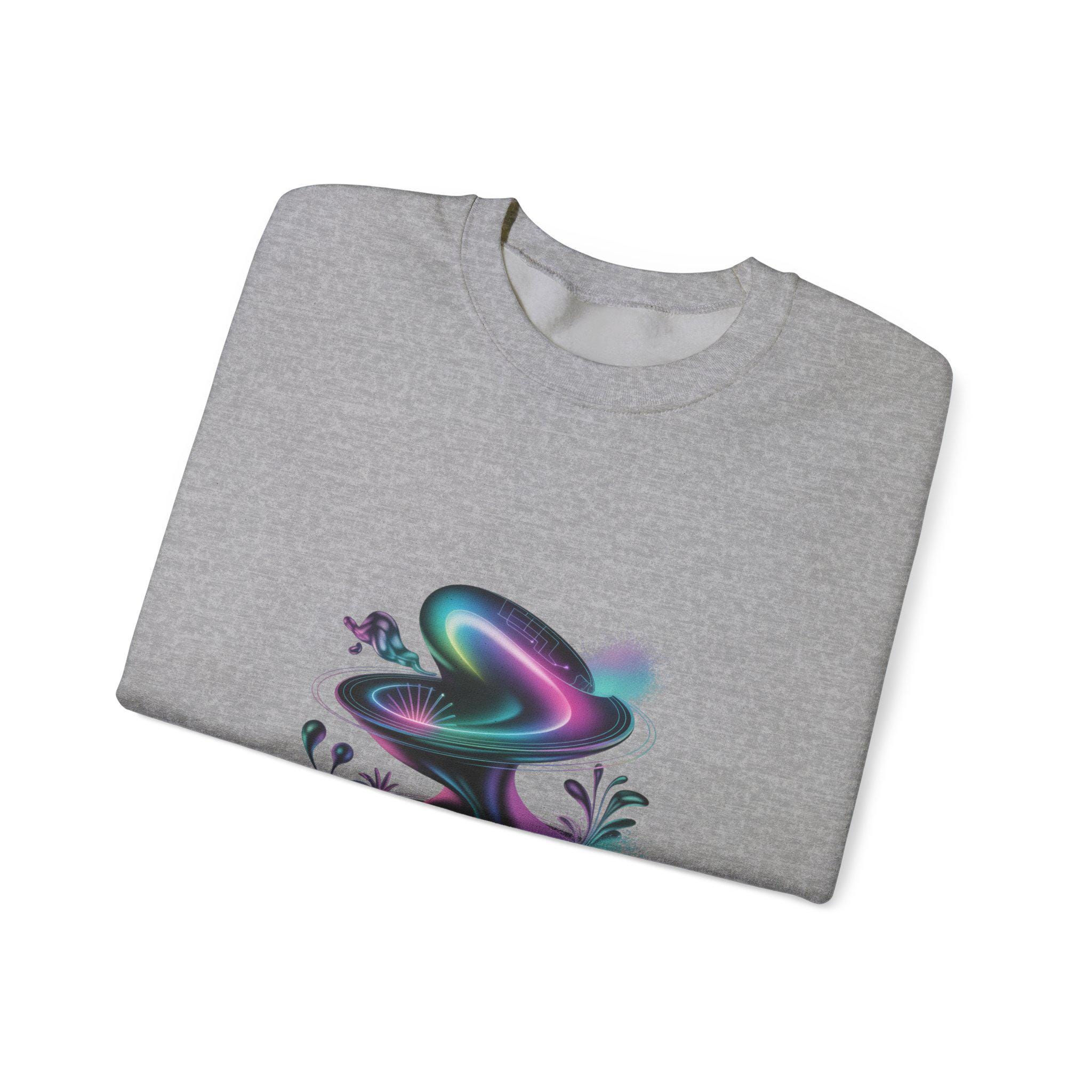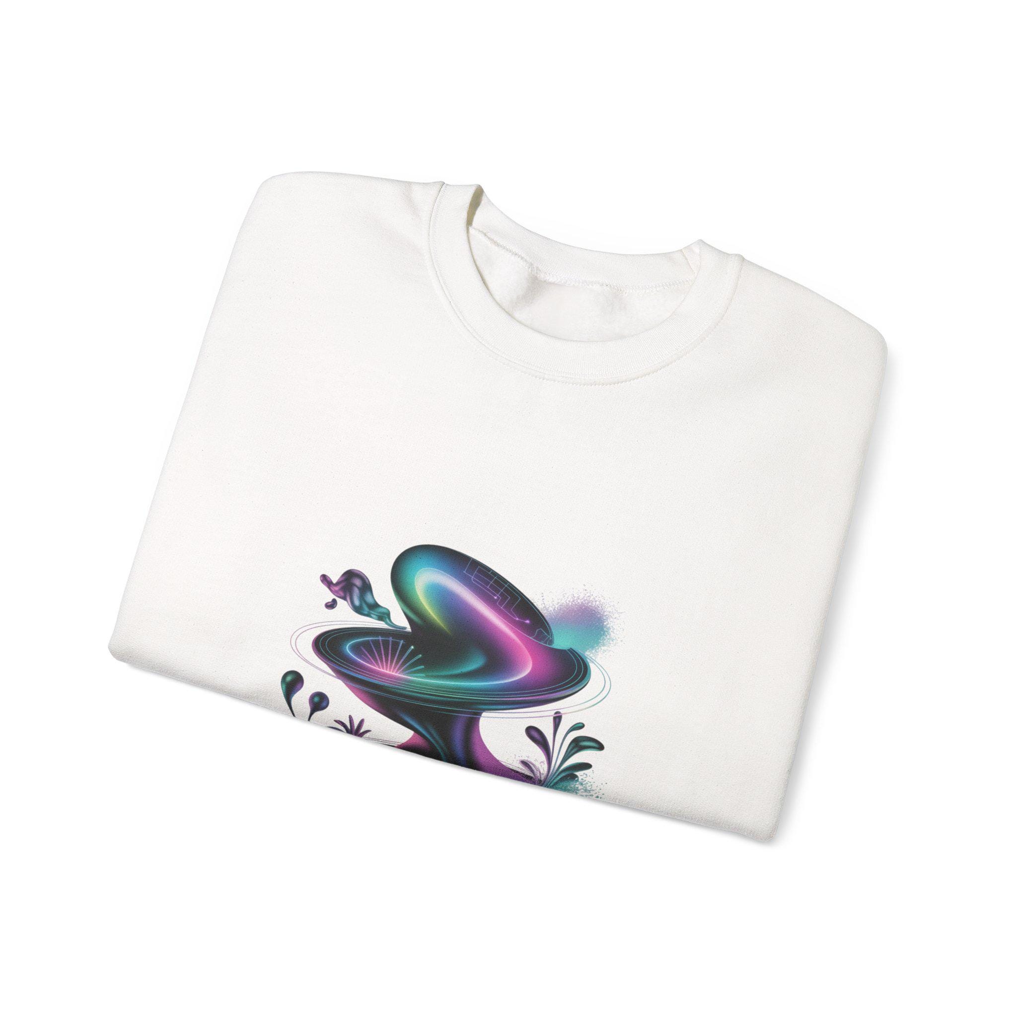 A cozy crewneck sweatshirt featuring a surreal, iridescent dreamscape print in neon-leaning gradients. The artwork pairs fluid, otherworldly forms with minimal, sleek typography to reflect the AI art & dreamscape trend—a wearable visual study in futuristic, exploratory aesthetics. Lightweight-yet-structured knit and soft fleece make it suitable for everyday layering while letting the graphic remain the focal point for digital-art and sci-fi–leaning wardrobes.