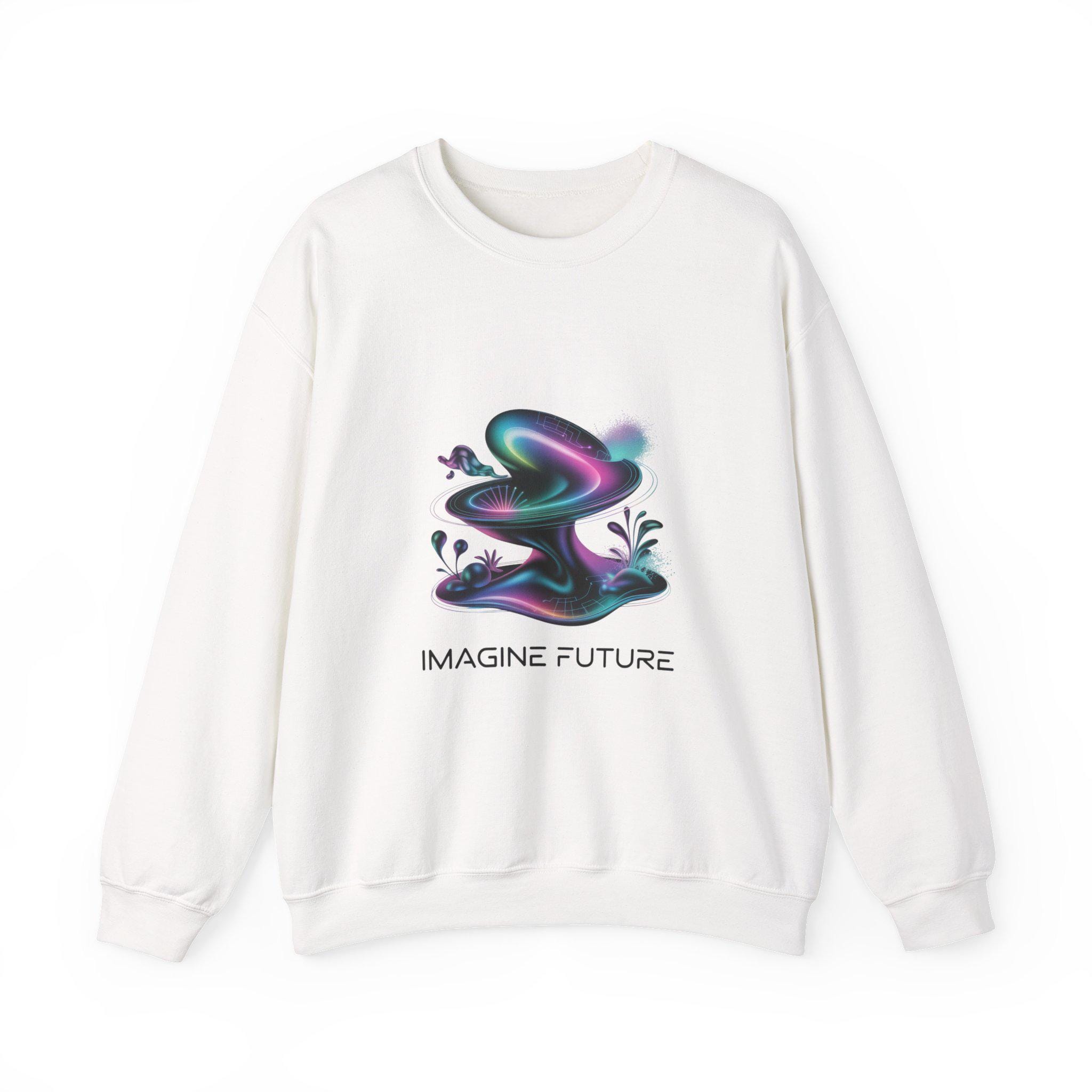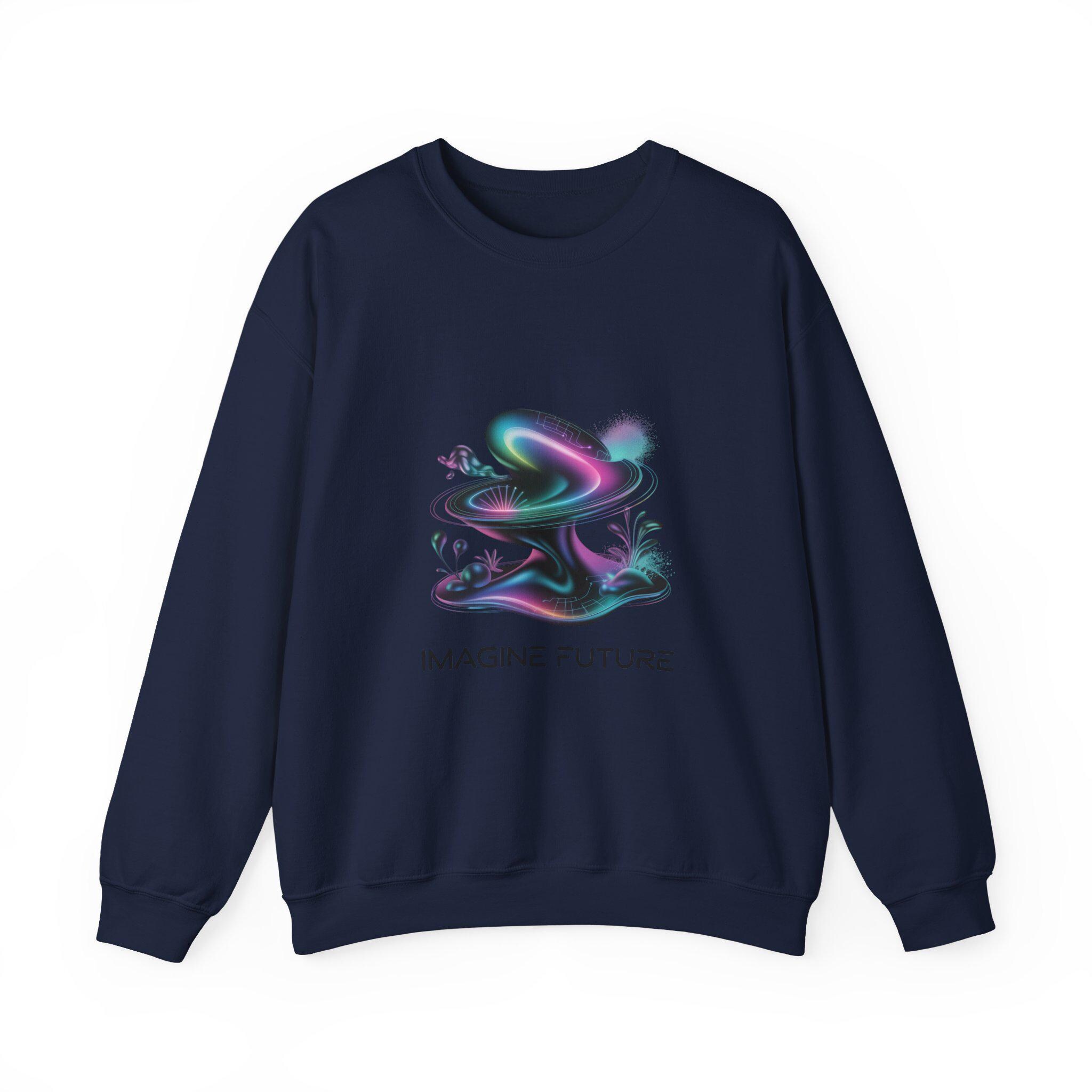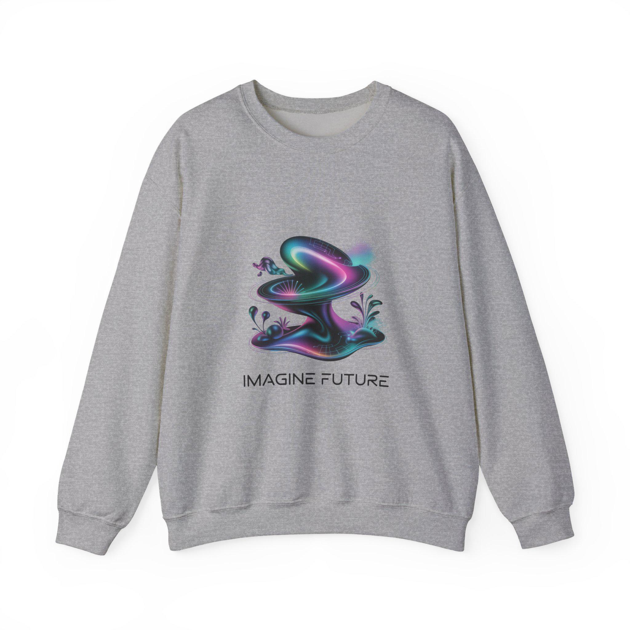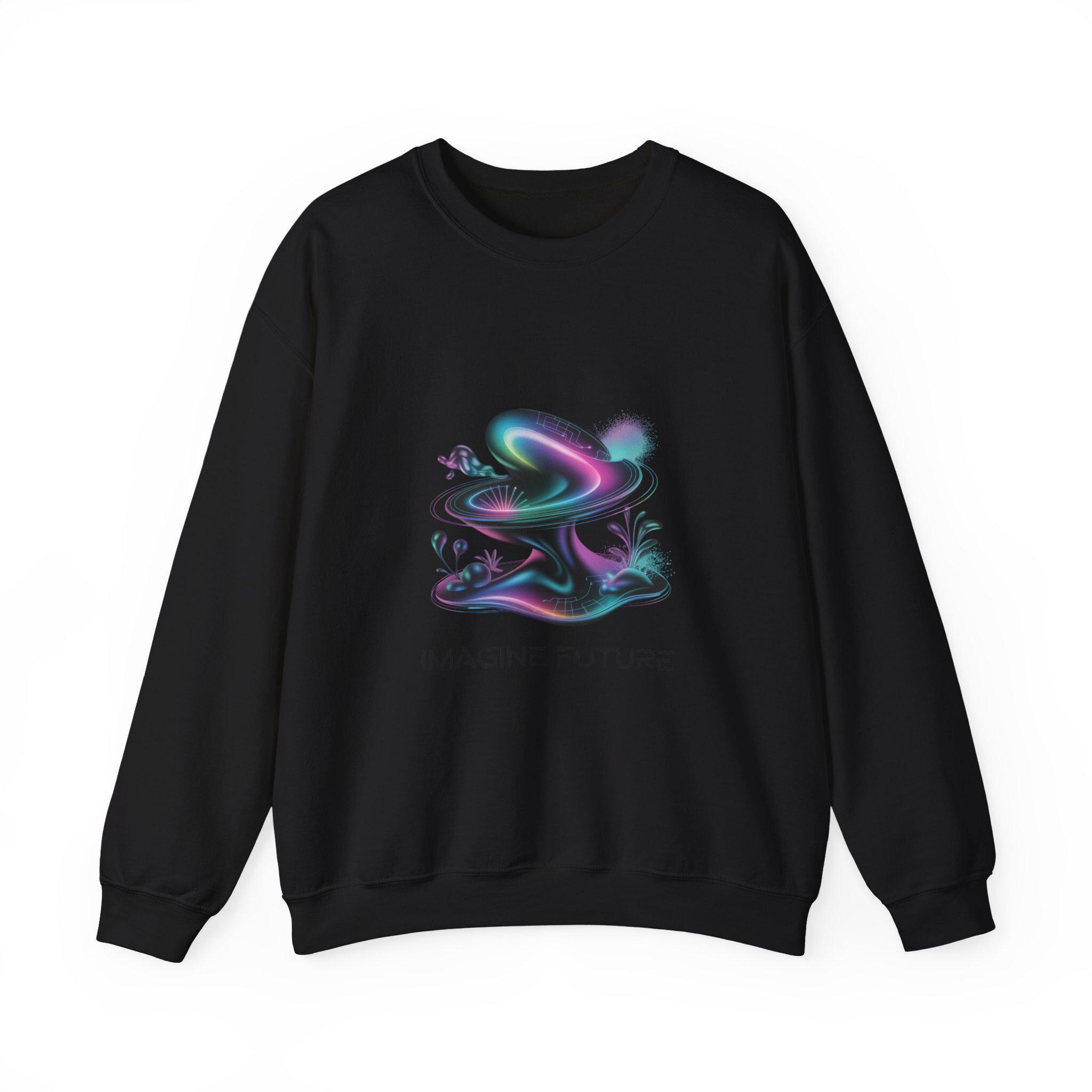 A cozy crewneck sweatshirt featuring a surreal, iridescent dreamscape print in neon-leaning gradients. The artwork pairs fluid, otherworldly forms with minimal, sleek typography to reflect the AI art & dreamscape trend—a wearable visual study in futuristic, exploratory aesthetics. Lightweight-yet-structured knit and soft fleece make it suitable for everyday layering while letting the graphic remain the focal point for digital-art and sci-fi–leaning wardrobes.