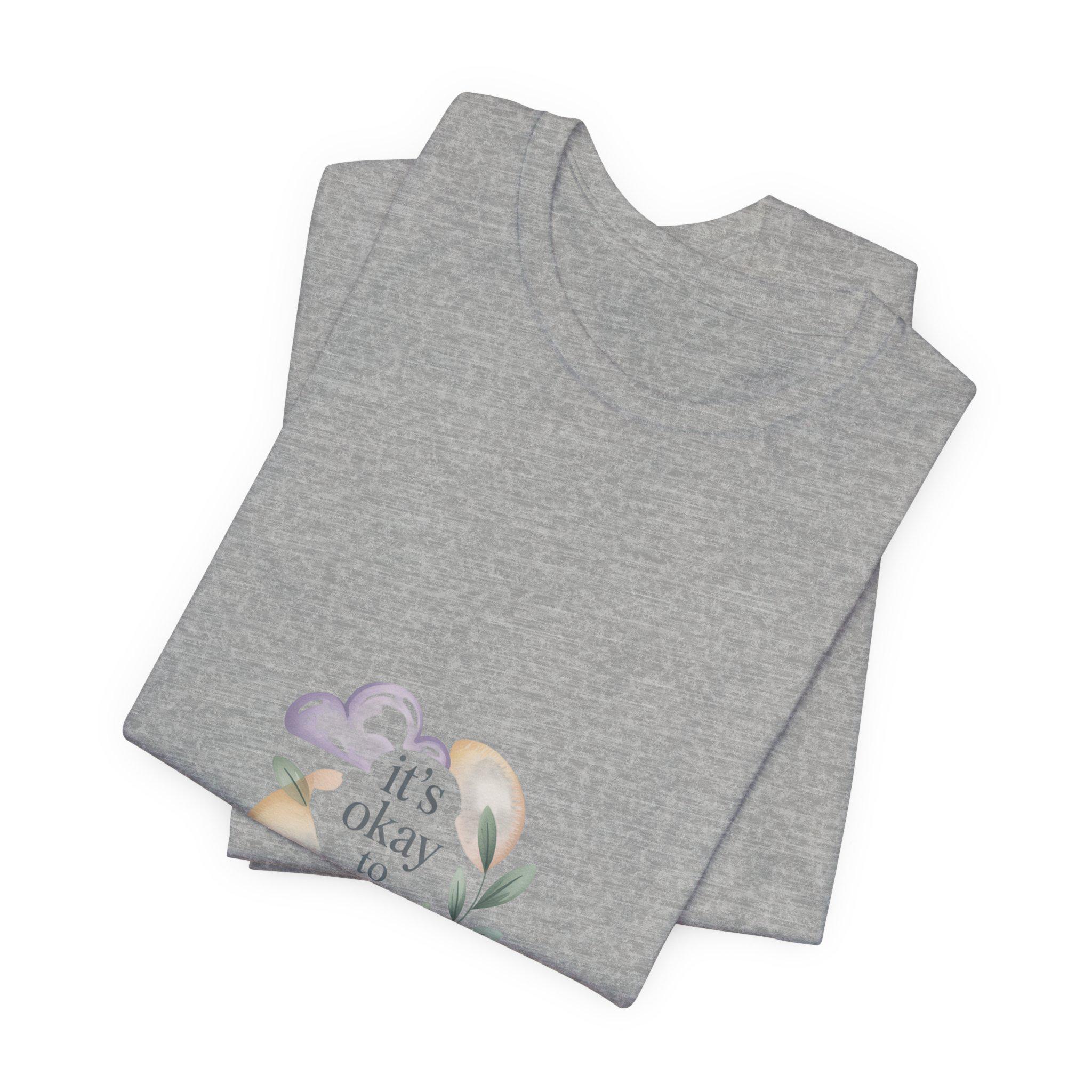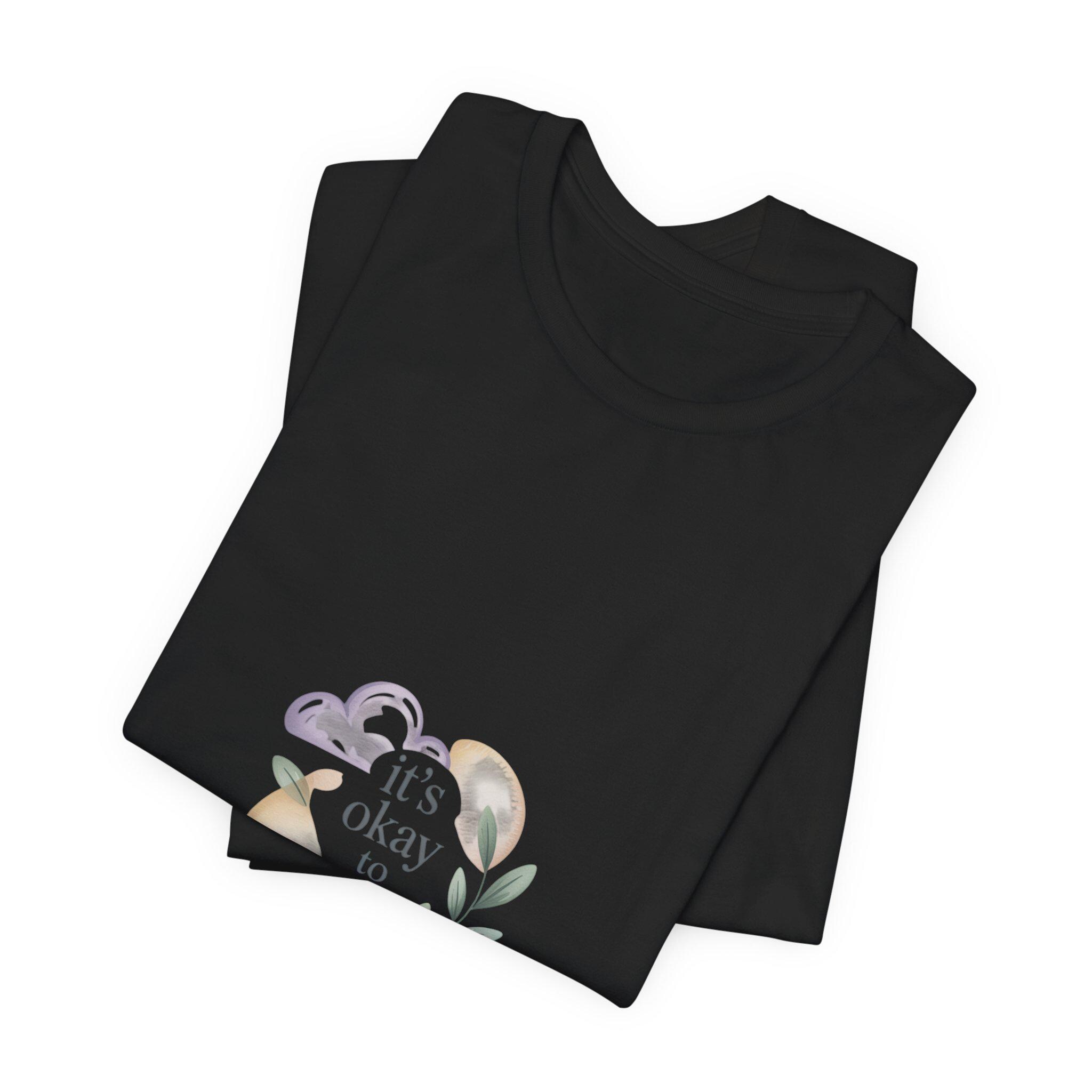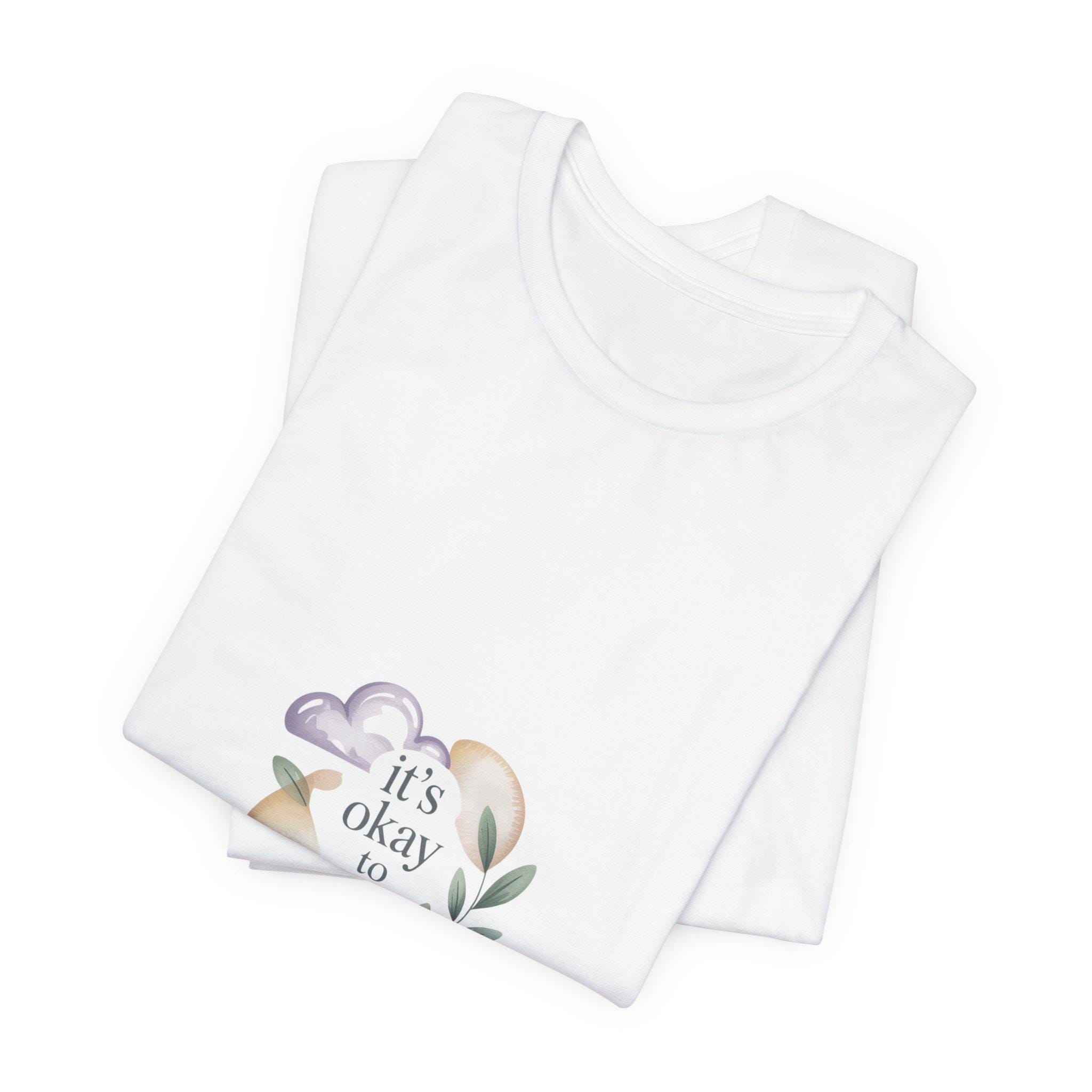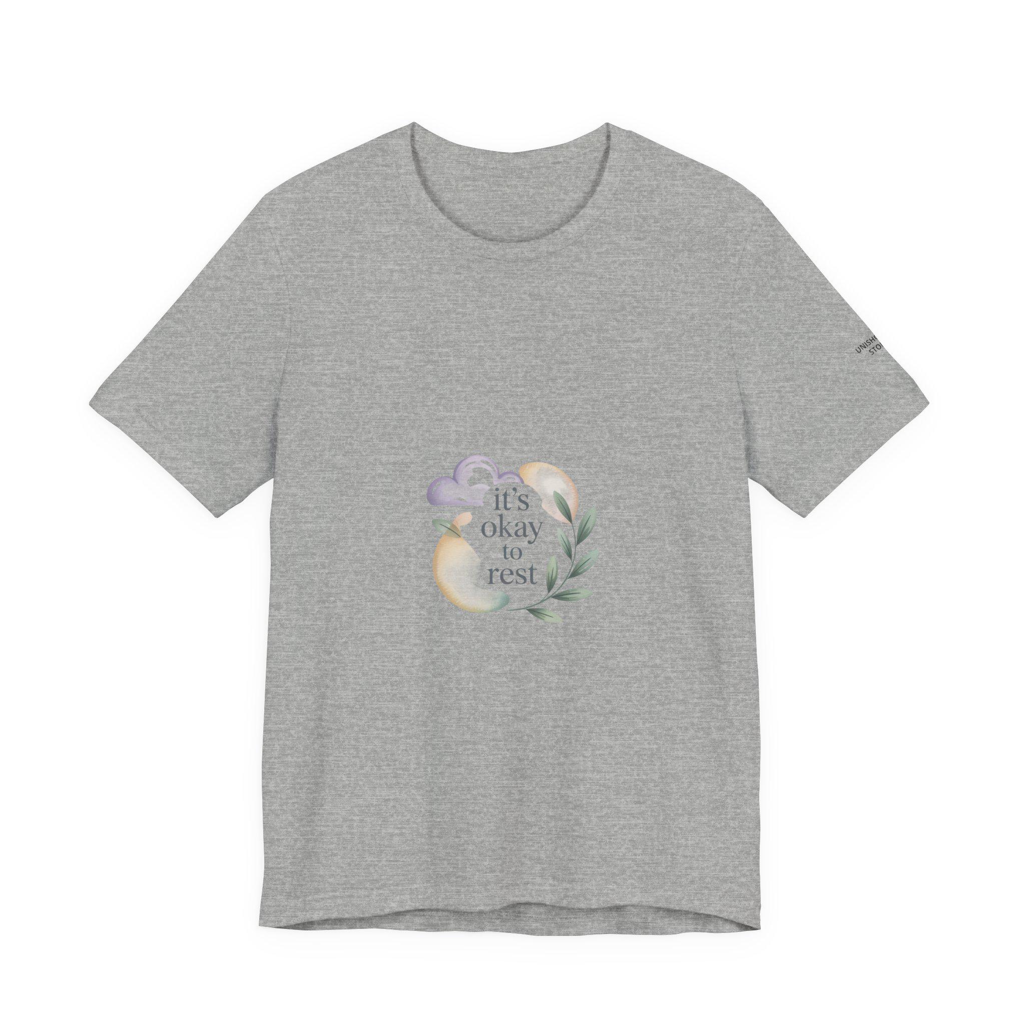 Soft, low-energy affirmation tee featuring a gentle pastel illustration and a short validating line that emphasizes rest and self-compassion. The artwork pairs a muted crescent moon, a sleepy cloud, and a small sprig in cream-and-pastel tones with light serif text reading a calm reassurance. Designed to blend into everyday wear for burnout-aware buyers who prefer subtle, soothing messages that normalize slowing down.