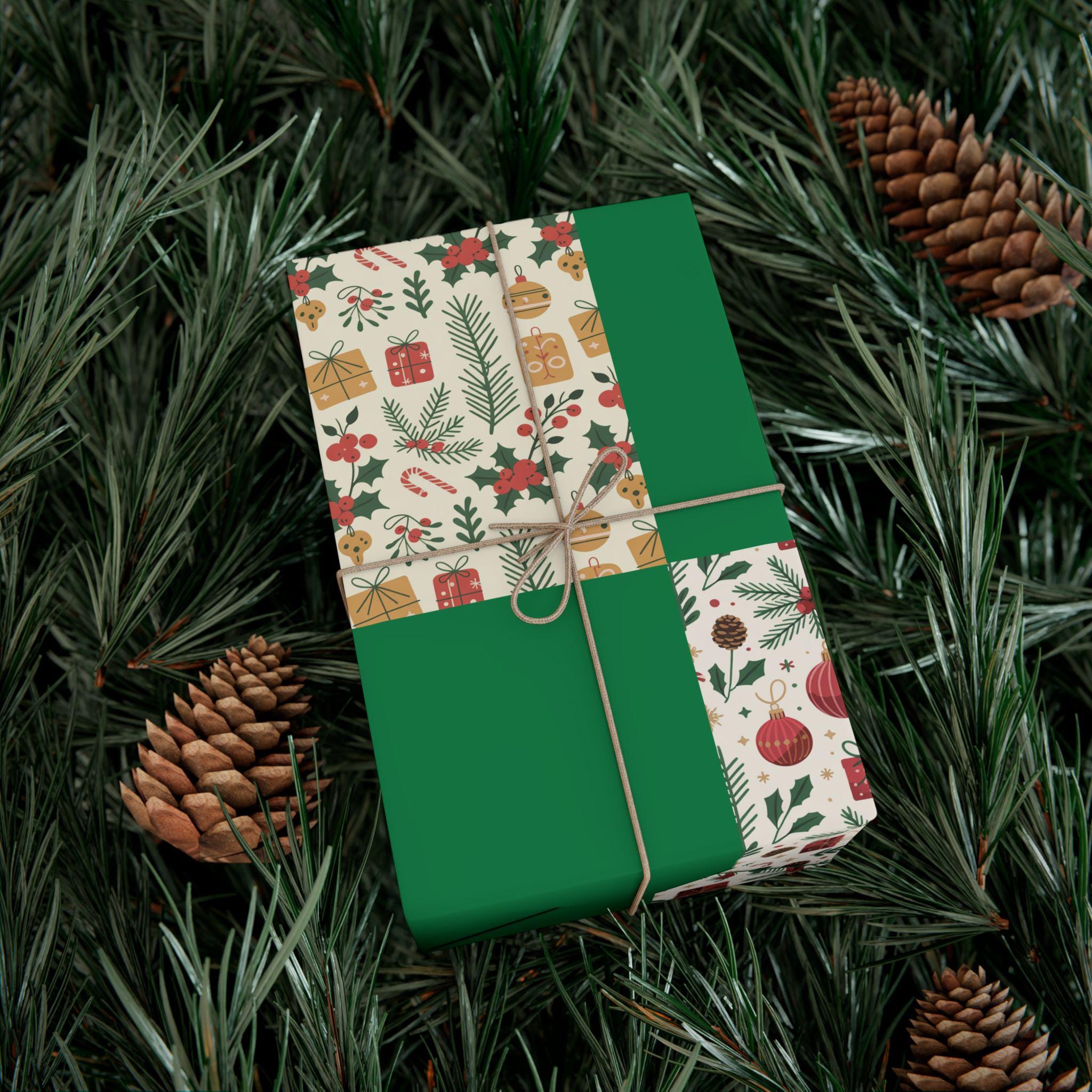 Bring warm, nostalgic holiday energy to every parcel with this high-quality gift wrap. The paper pairs a rich forest-green background with a charming vintage ornament-and-gift motif in soft reds and pine greens. It feels substantial in the hands, folds cleanly without cracking, and resists light scratches and spills so your presentation stays crisp from ribbon-tying to unboxing. Printed with Greenguard UL certified water-based inks, the design stays bright while meeting strict safety and environmental standards. Use the satin finish when you want a little sheen, or choose matte for a cozy, handmade look. Whether you’re wrapping small stocking-stuffers or larger surprises, this wrap keeps the focus on the moment — the rustle of paper, the tied twine, and the smile when it’s opened.