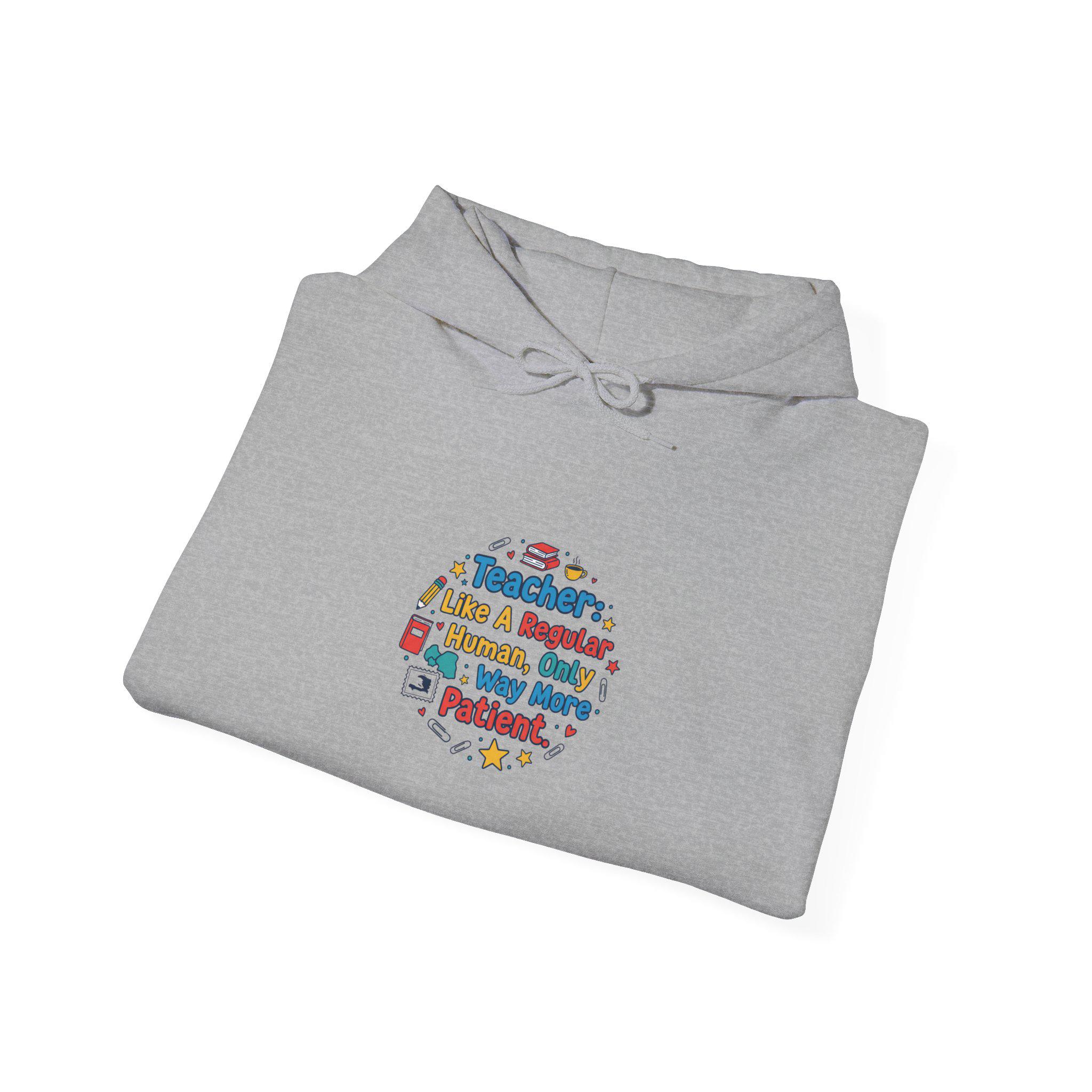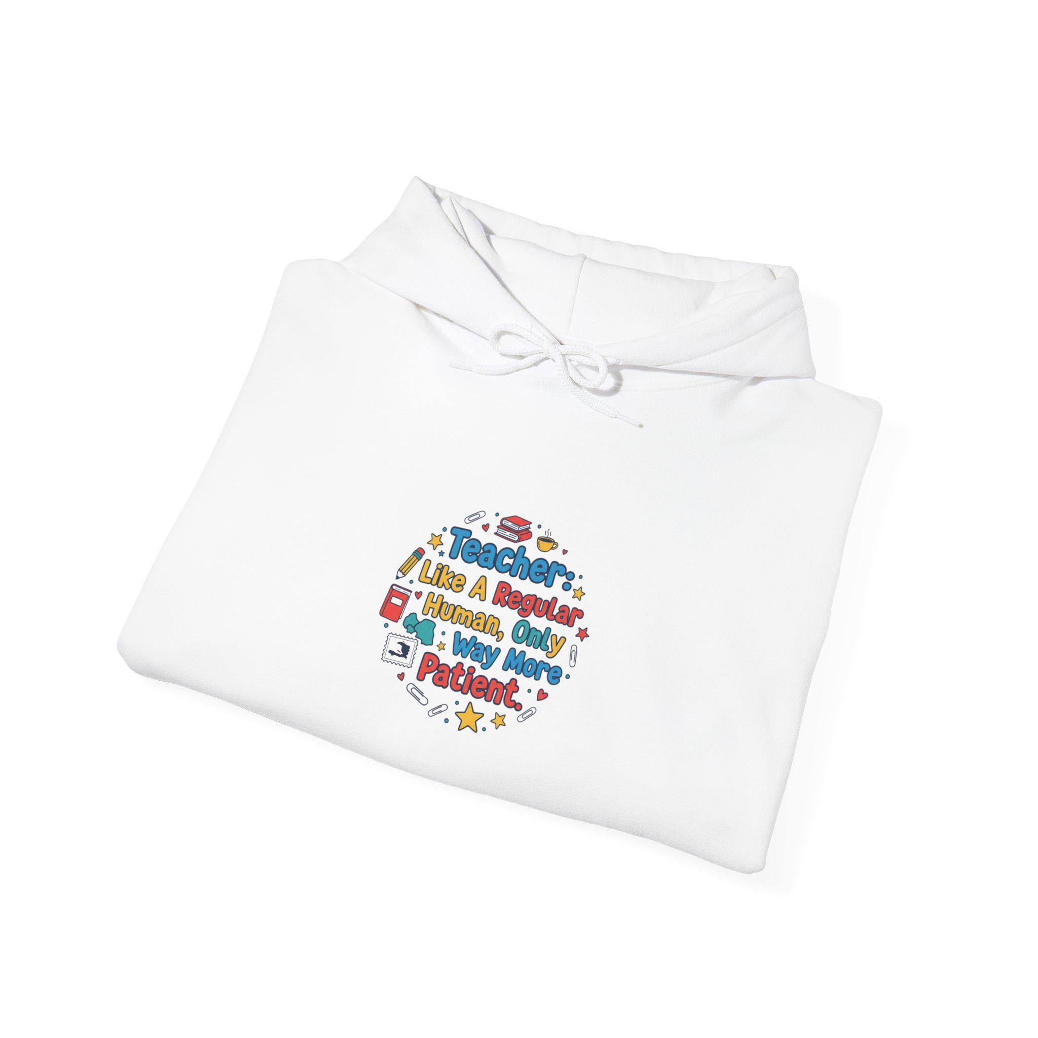 Cozy classroom vibes meet cheeky teacher humor: a soft unisex hoodie featuring a centered, school-inspired circular design made of colorful icons and bold, readable lettering that references teacher life and appreciation. The artwork reads clearly at a glance on the chest, using playful primary tones and simple school motifs to match the Teacher Appreciation Gifts trend. Comfortable medium-heavy fleece and classic fit make it a wearable nod to classroom pride during cool days and end-of-year celebrations.