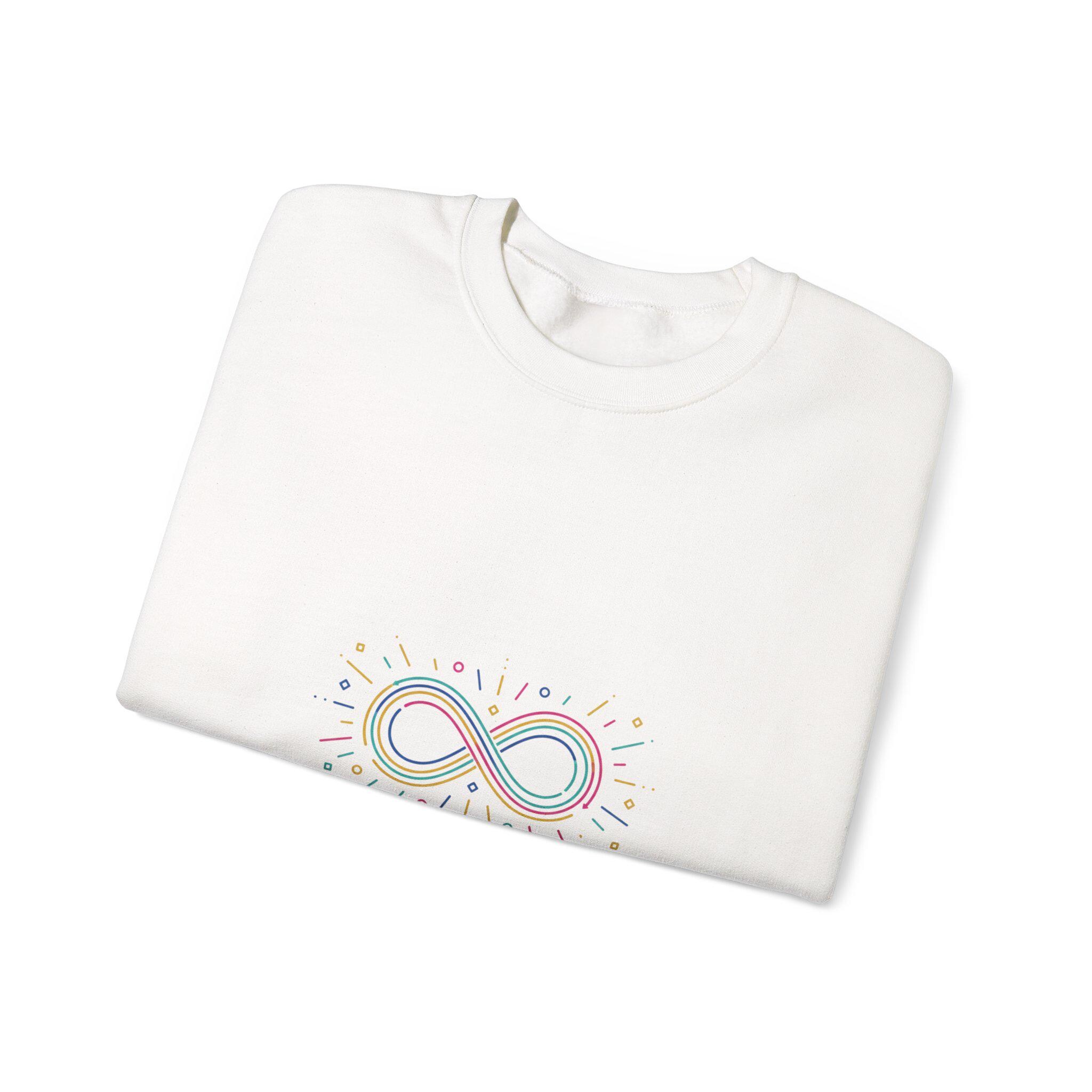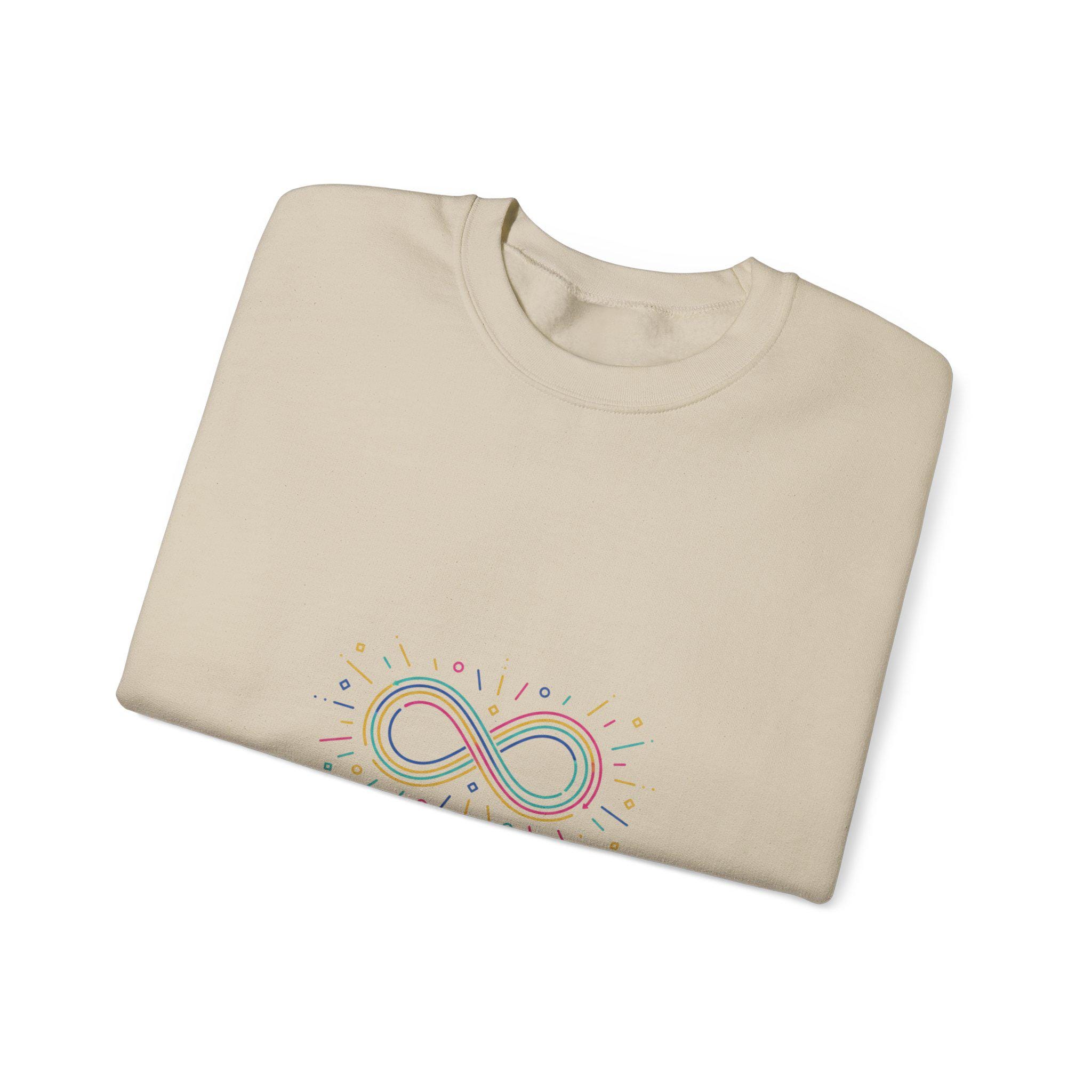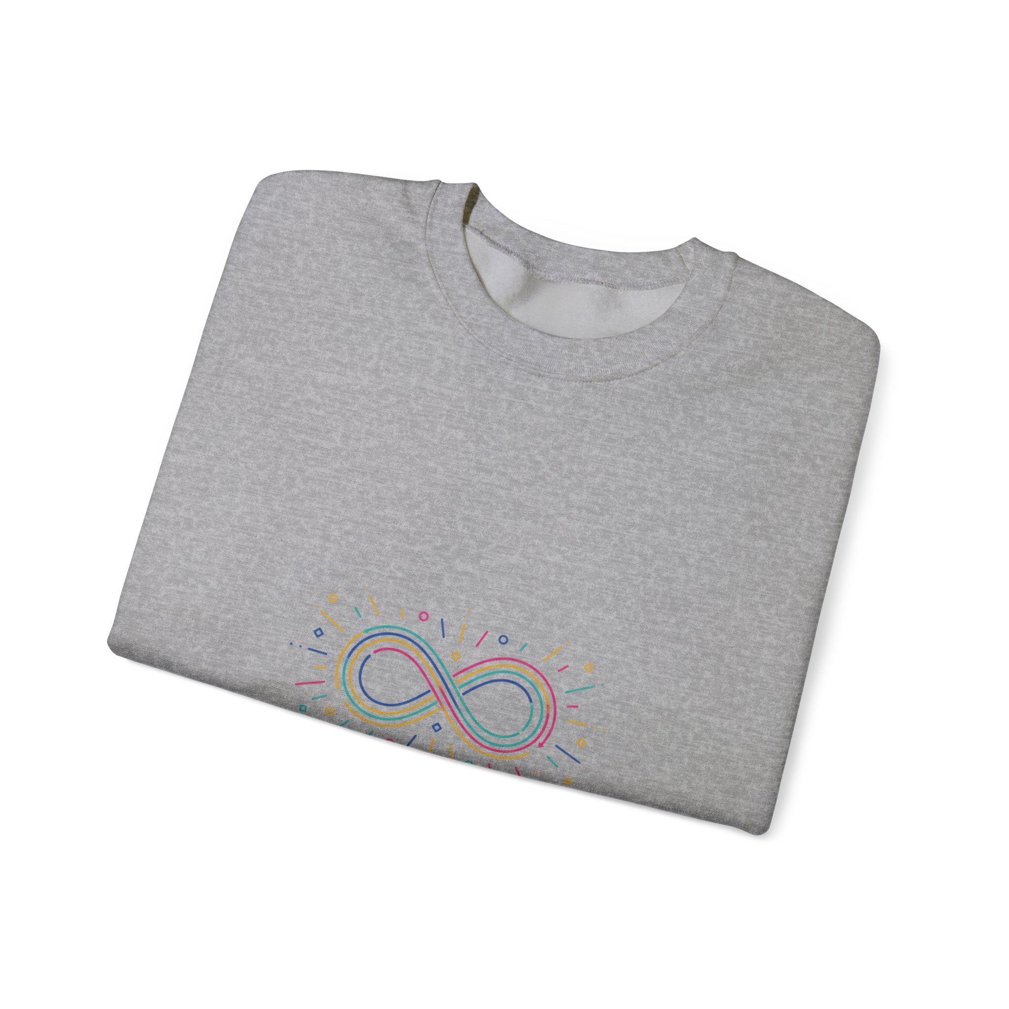 Soft, affirming sweatshirt featuring a stitched infinity motif in gentle rainbow hues and the statement “NEURODIVERGENT BRAINS ARE BRILLIANT.” The artwork reads as celebratory and strength-focused rather than awareness-only, using approachable colors and clear, readable type that fits neurodiversity and autistic pride wardrobes. The crewneck silhouette and understated placement make it suitable for everyday wear, advocacy spaces, or workplace-casual settings where a calm, positive message is wanted.